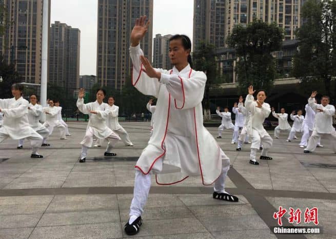 11-08《中國新聞網》重慶90后小伙教武術吸引百余名老人“拜師”